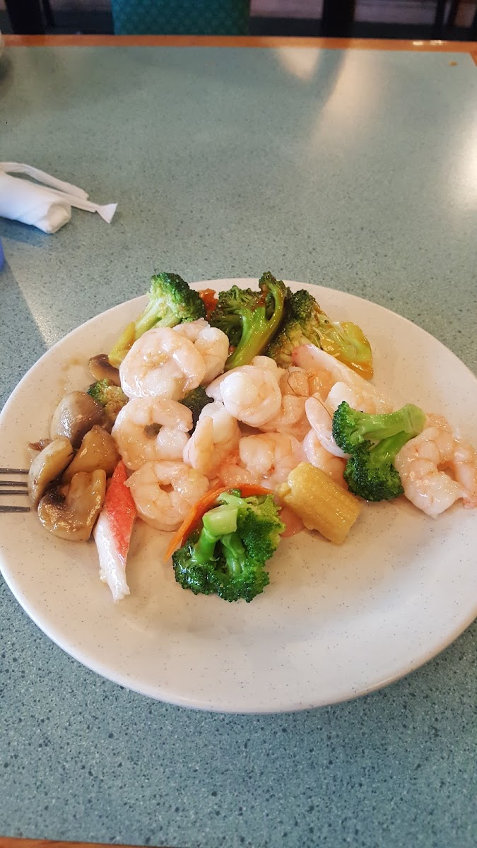 The dining setup is typical of a buffet-style Chinese restaurant, offering an all-you-can-eat format at lunch and dinner with dishes that cover many familiar favorites like Orange Chicken, Shrimp with Broccoli in Garlic Sauce, and even options such as California Rolls and tempura. The environment feels clean and functional, oriented toward quick and hearty service more than leisurely dining.