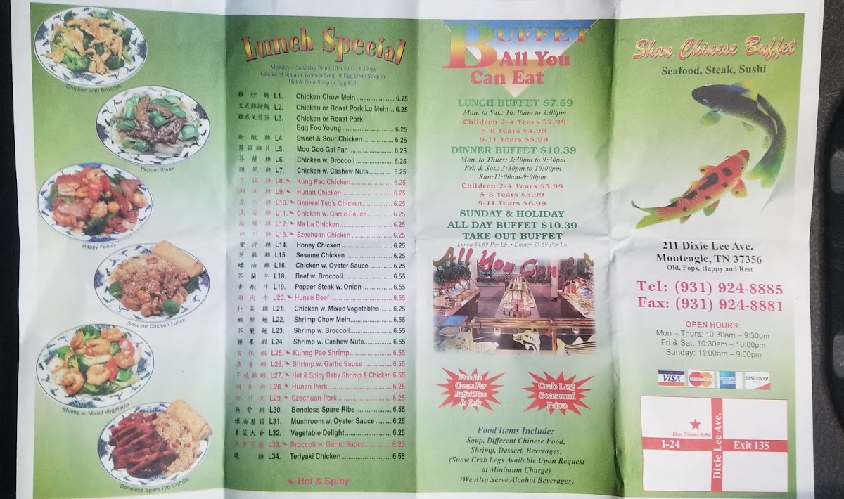Menu items are suitable for casual dining occasions and can accommodate quick meals or larger sit-down visits. The buffet format allows for sampling multiple dishes in one serving. Additionally, carryout options are available, making the menu flexible for customers seeking dine-in or to-go meals.